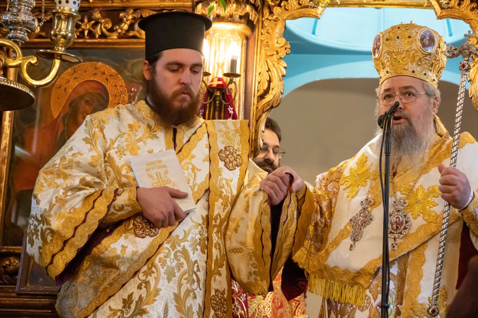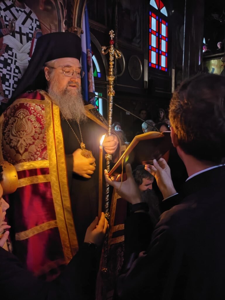 Πρὶν τὸ πέρας τῆς Θείας Λειτουργίας ὁ Σεβασμιώτατος ἀπένειμε τὸ ὀφφίκιο τοῦ Πρωτοπρεσβυτέρου στὸν προϊστάμενο τοῦ Ἱεροῦ Ναοῦ π. Γρηγόριο Τσαβαλᾶ τιμῶντας ἔτσι τὸ ἔργο ποὺ ἐπιτελεῖ στὴν ἐνορία.