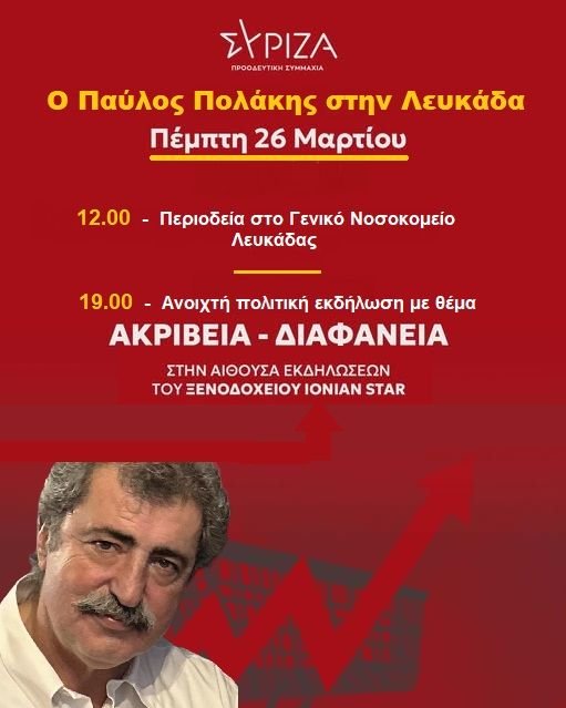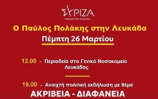 Η Νομαρχιακή Επιτροπή ΣΥΡΙΖΑ Λευκάδας σας καλεί σε ανοιχτή πολιτική εκδήλωση με θέμα: