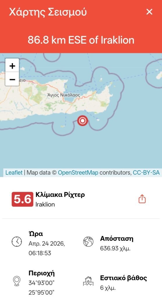 Τον κίνδυνο για μεγάλο σεισμό άνω των 6 ρίχτερ στο άμεσο μέλλον, σε τέσσερις περιοχές της Ελλάδος, μεταξύ των οποίων και η Λευκάδα, εξέφρασε σε συνέντευξή του ,χθες, Παρασκευή 24 Απριλίου 2026, στον ραδιοφωνικό σταθμό «Παραπολιτικά 90,1», στην εκπομπή «Απέναντι μικρόφωνα», με τους δημοσιογράφους Σωτήρη Ξενάκη και Βασίλη Σκουρή, ο γνωστός Καθηγητής Σεισμολογίας. κ. Γεράσιμος Παπαδόπουλος, με αφορμή τον μεγάλο χθεσινό σεισμό των 5,7 βαθμών της κλίμακας ρίχτερ, που σημειώθηκε στις νότιες ακτές του Λασιθίου Κρήτης.